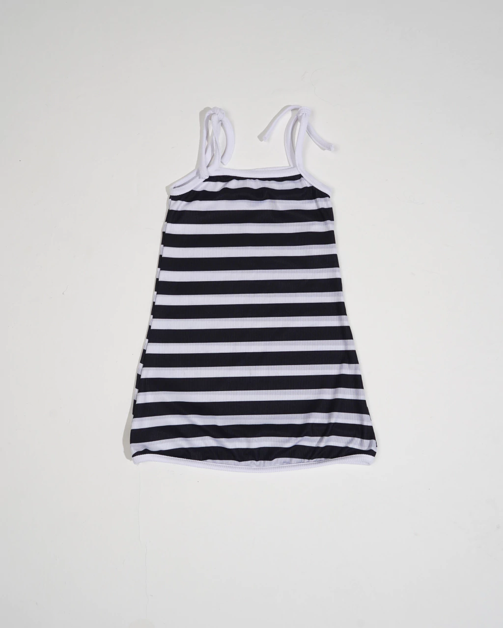 Vestido rayado blanco y negro con tiras ajustables, tela rib.